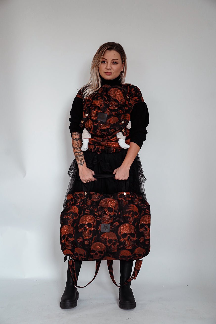 Il KOKADI Mommy Bag Skulls x Florian è molto più di una borsa per pannolini: è espressione di personalità. Il nero profondo, intervallato da scintillanti teschi color rame, li fa apparire ribelli e lussuosi allo stesso tempo. Questo design rappresenta i genitori che non scendono a compromessi quando si tratta di stile, funzionalità e attitudine.