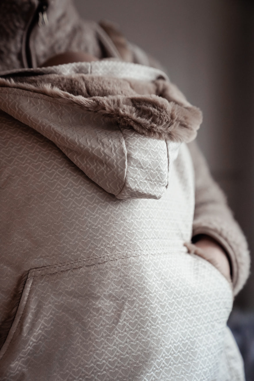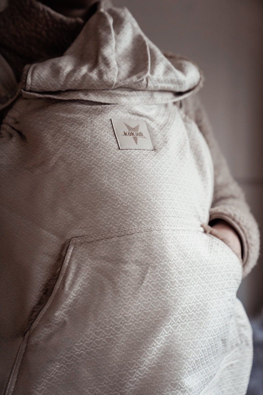 Questo KOKADI TrageCover Heart2Heart Crema è il complemento ideale per il tuo Marsupio con tempo fresco, vento o temperature variabili. Il discreto jacquard a cuore in una calda tonalità crema garantisce un aspetto calmo e di alta qualità e si adatta a quasi tutti Marsupio e ogni vestito.