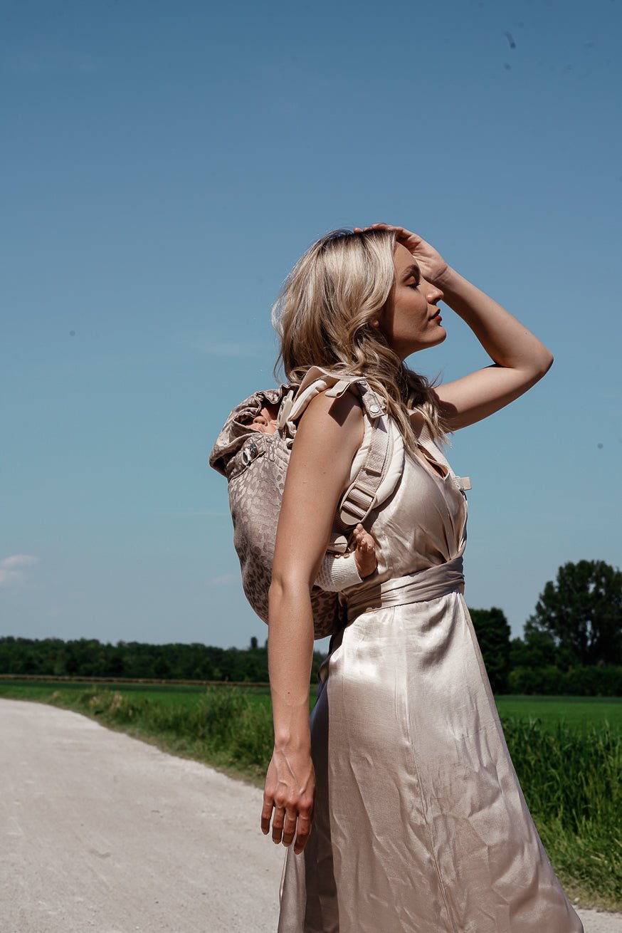 Das absolute Tragetuch-Gefühl, nur als Babytrage. Mit anschmiegsamen Tragetuch Schulterträgern, sitzt diese Babytrage immer perfekt auf dich abgestimmt!