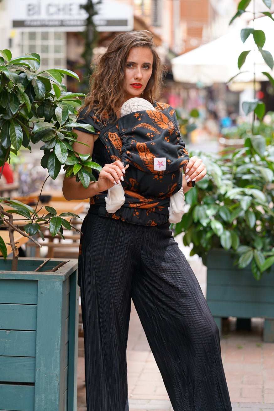 Das absolute Tragetuch-Gefühl, nur als Babytrage. Mit anschmiegsamen Tragetuch Schulterträgern, sitzt diese Babytrage immer perfekt auf dich abgestimmt!