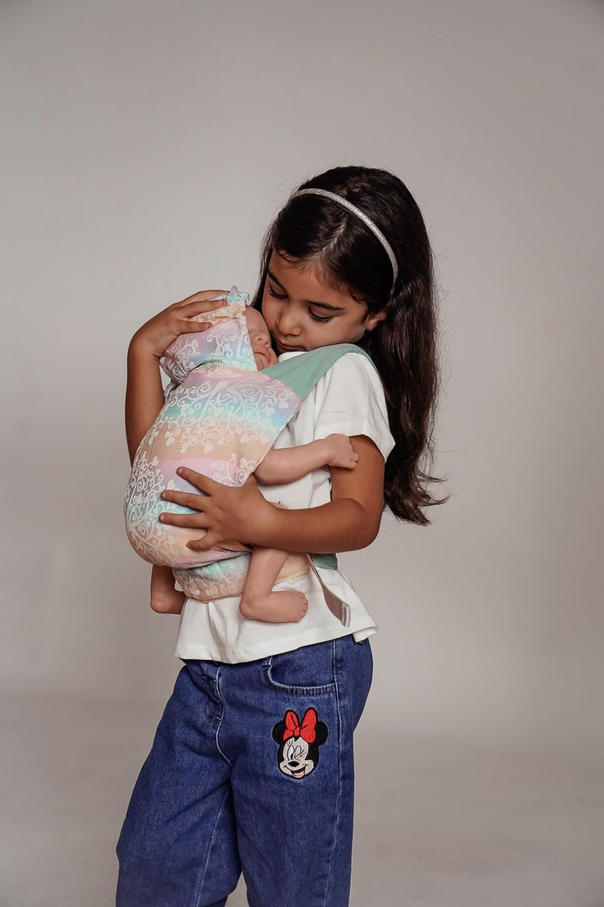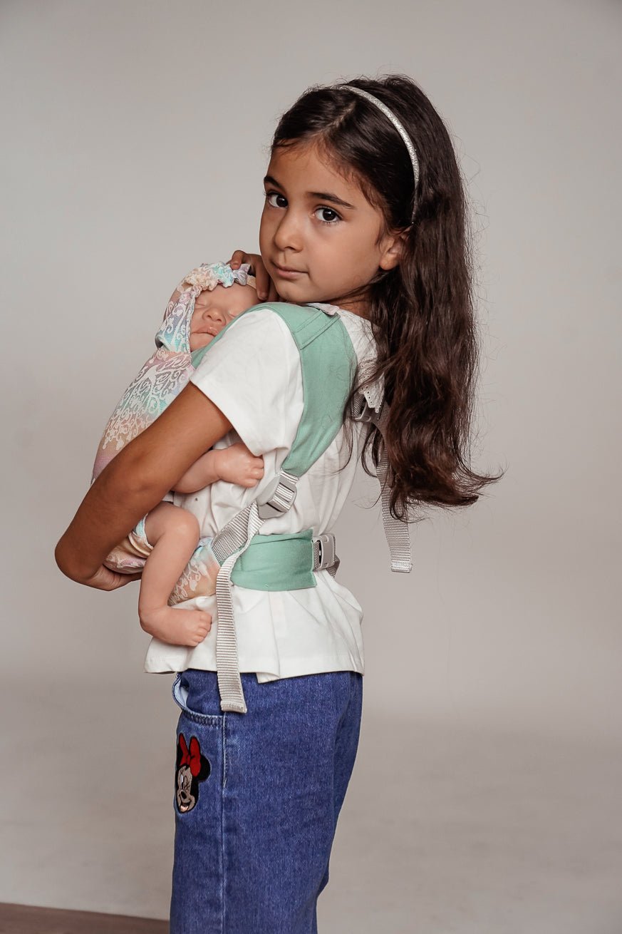 Come tutti i nostri prodotti per neonati, il pannello posteriore è realizzato in tessuto per neonati. La cintura in vita del MiniFlip è come quella Flip quello grande regolabile. La larghezza del ponte può essere facilmente regolata sul MiniFlip.